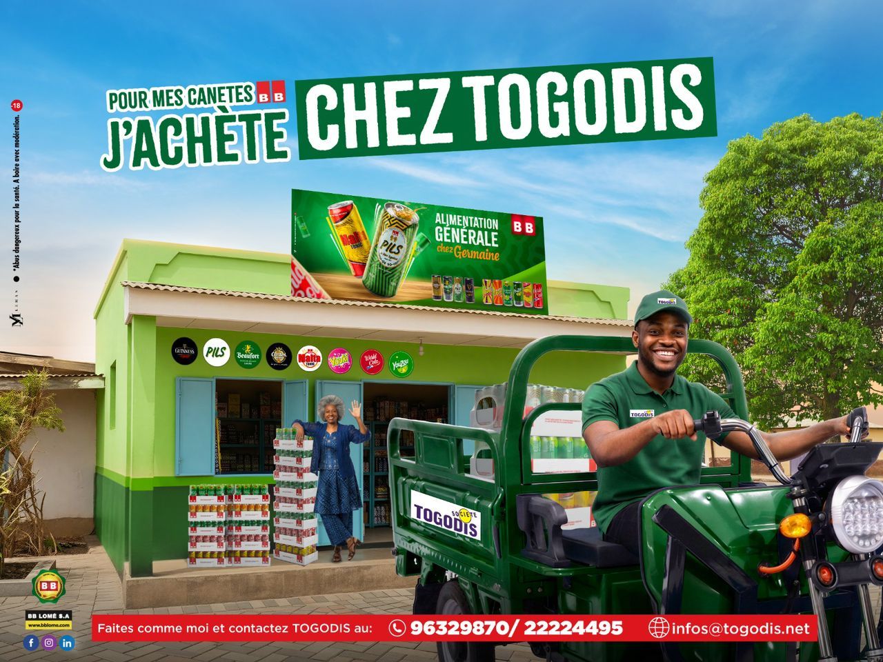 Entreprise spécialisée dans la distribution, TOGODIS est le distributeur exclusif des canettes BB Lomé. À travers cette position stratégique, elle offre aux entreprises, bars, restaurants, hôtels, supermarchés et alimentations générales une solution sûre pour leurs besoins d’approvisionnement en canettes des boissons BB Lomé.